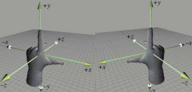 Trên thực tể có hai hệ tọa độ khác nhau dựa trên bàn tay trái và tay phải. Các hệ đồ họa nhóm OpenGL, Metal chỉ hỗ trợ hệ tay trái. Còn DirectX thì theo hệ tay phải, nhưng vẫn hỗ trợ hệ tay trái nếu muốn.